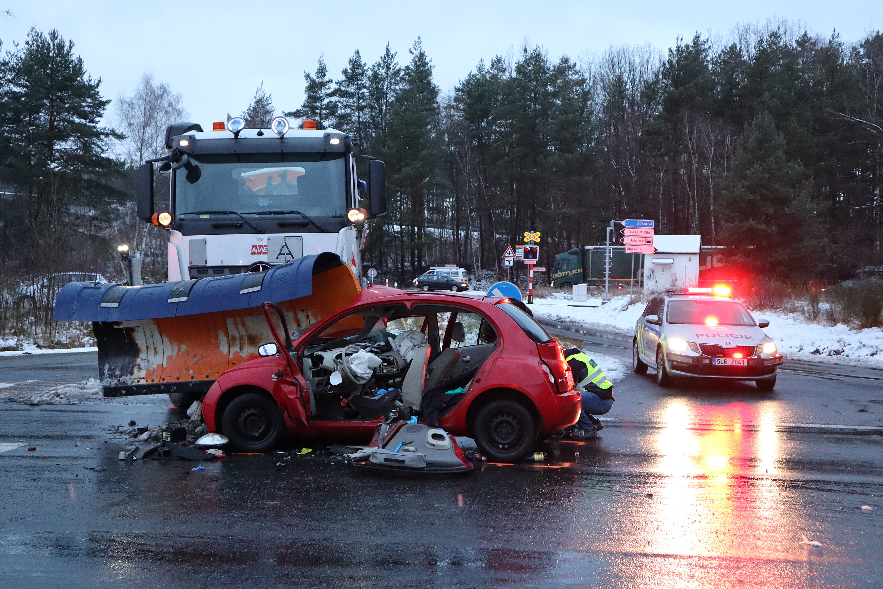 Na silnici I/9 u Sosnové na Českolipsku zemřel v pondělí ráno senior za volantem osobního auta. Narazil do sypače, který vjížděl z vedlejší silnice a nedal mu přednost. Muž na místě svým zraněním podlehl, řekla ČTK českolipská policejní mluvčí Ivana Baláková. Okolnosti nehody policie vyšetřuje. Kvůli nehodě byla na několik hodin uzavřena silnice I/9 u Sosnové.