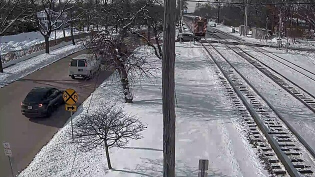 Auto zůstalo čouhat do kolejiště, vlak ho nabral v plné rychlosti