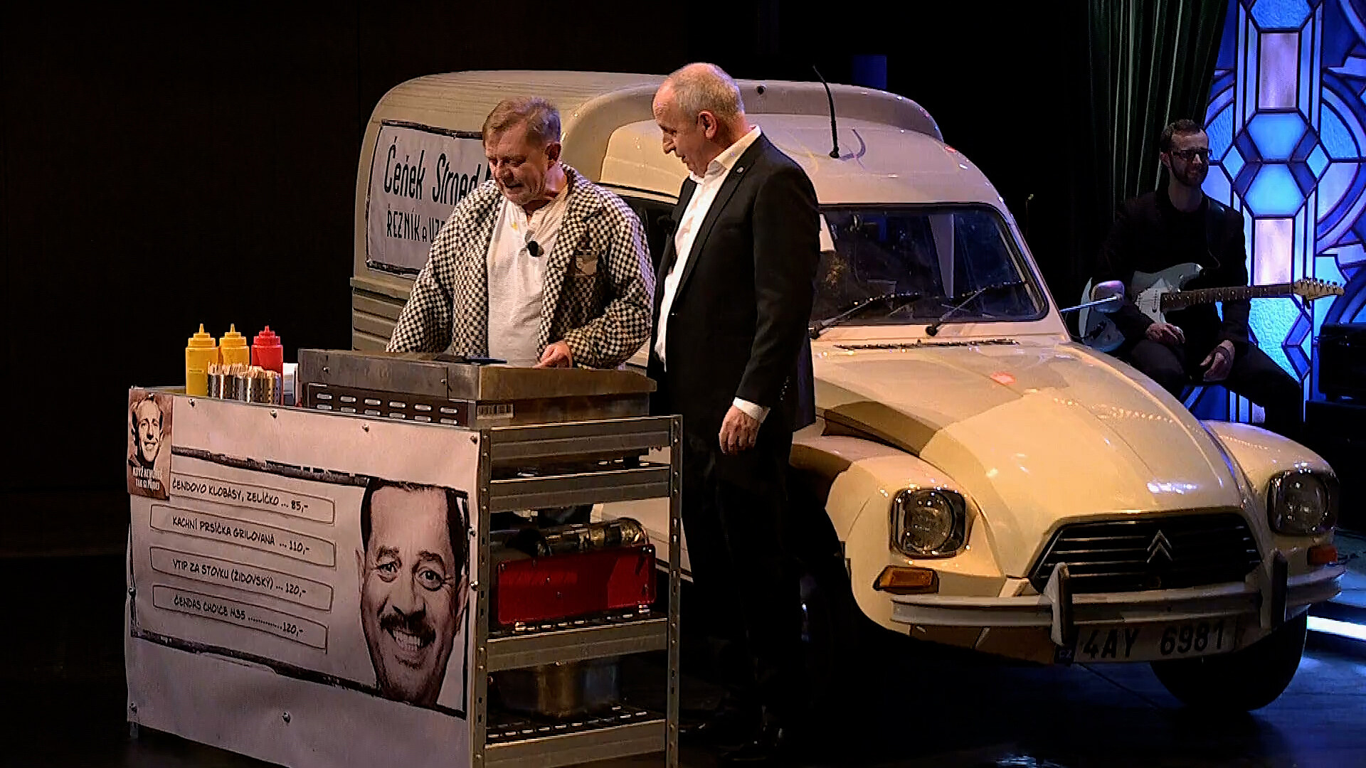 Herec Petr Čtvrtníček se dal na novou dráhu. S téměř čtyřicet let starým autem s nápisem Čeňek Strnad řezník a uzenář objíždí různé akce. Dorazil i do primácké Show Jana Krause, kde prozradil, že vyrábí lahůdky a uzeniny.