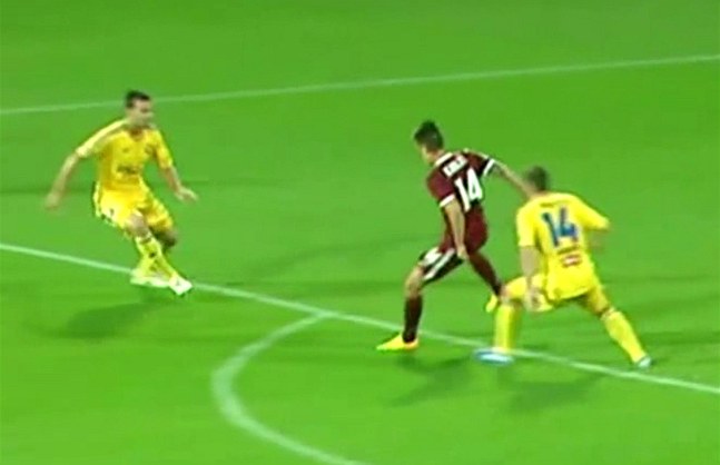 Faul na Václava Kadlece ve druhém poločase