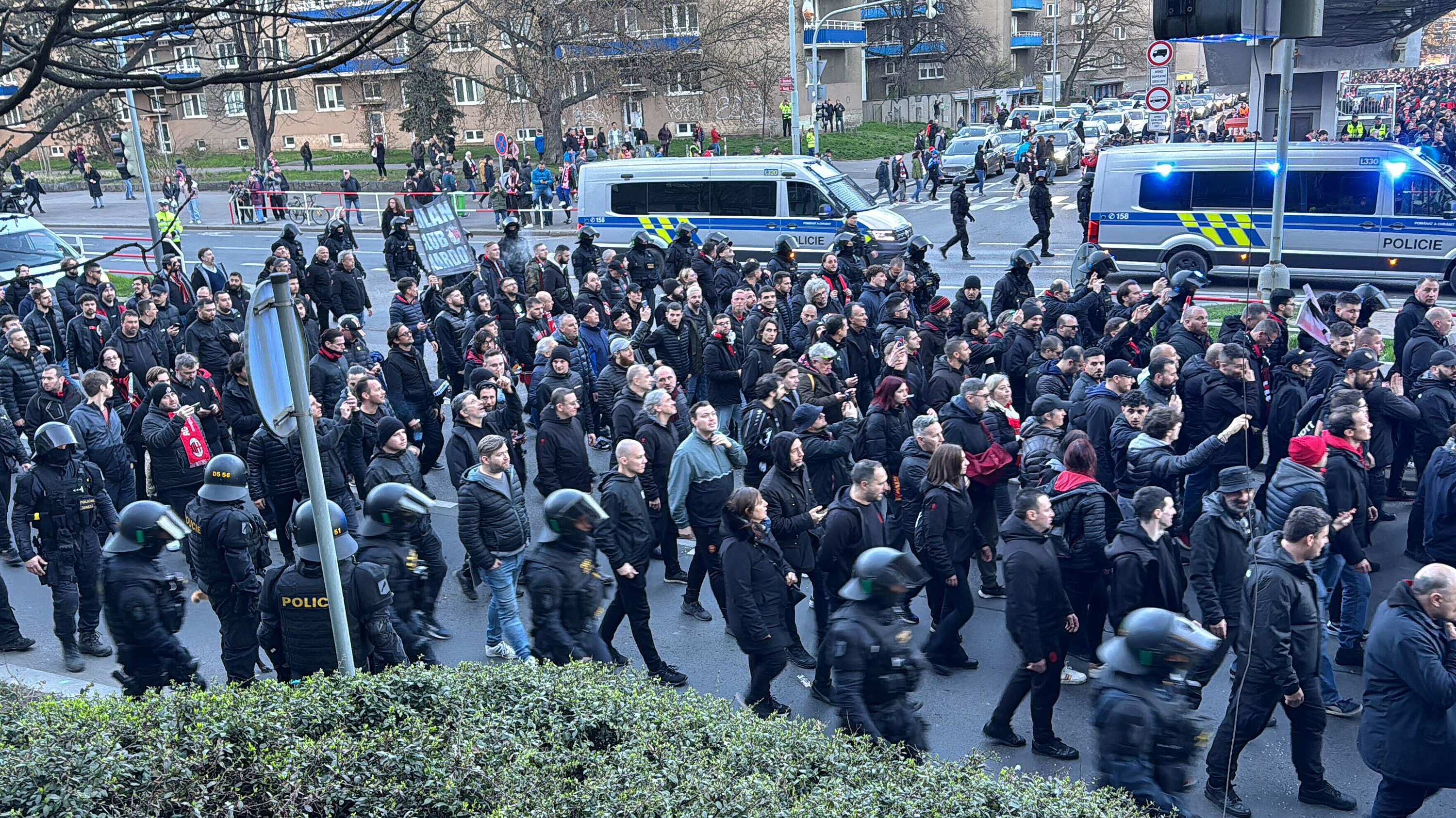 Pražští policisté během dnešního pochodu fanoušků fotbalového týmu AC Milán ze stanice metra Želivského na stadion Slavie ve Vršovicích zadrželi čtyři příznivce italského velkoklubu. Podezírají je ze spáchání přestupku - tři za použití pyrotechniky, čtvrtého muže kvůli hrubému jednání, kterého se dopustil vůči policistce. ČTK to řekl policejní mluvčí Jan Daněk. Před stadionem musela zasahovat i pořádková jednotka.