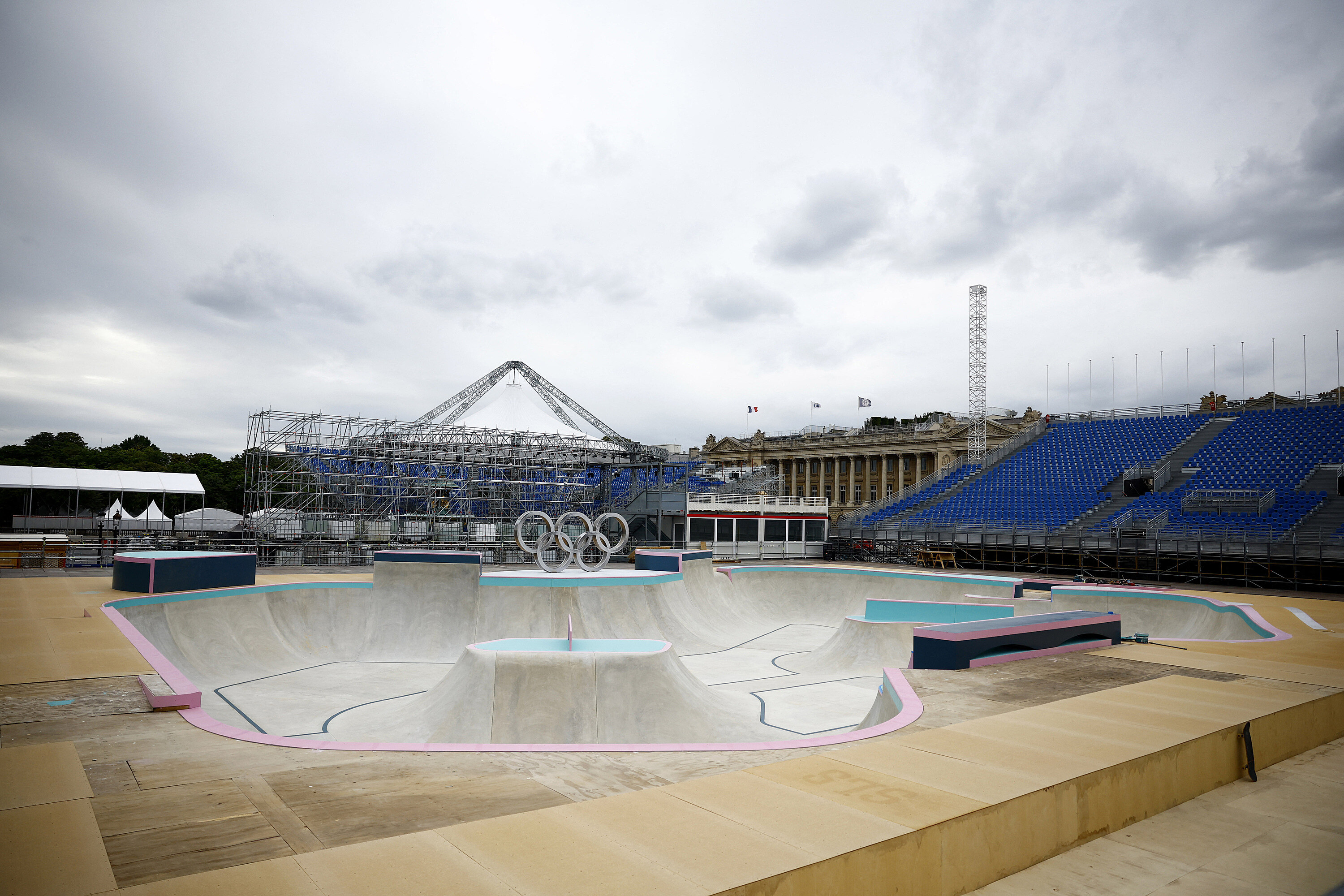 Na pařížském náměstí Svornosti vyrostlo obří sportoviště, které bude během olympijských her hostit soutěže ve skateboardingu, freestyle BMX, baskatbalu a breakdancu. Každý den by mělo přivítat až 25 tisíc fanoušků.