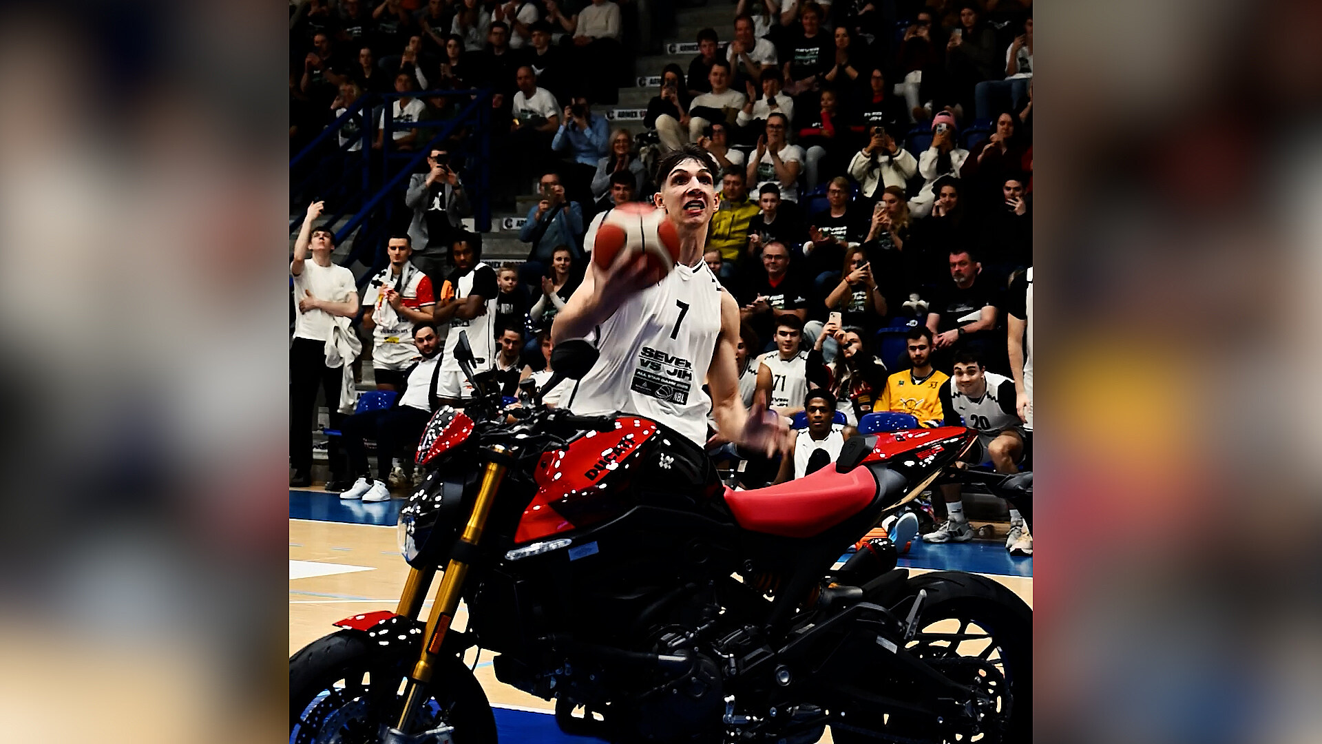 Král basketbalových smečařů přeletěl parťáka i motorku