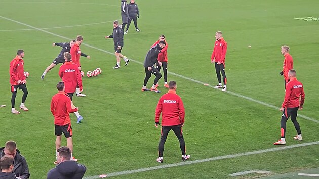 Sparťanští fotbalisté trénují před posledním utkáním Ligy mistrů v Leverkusenu