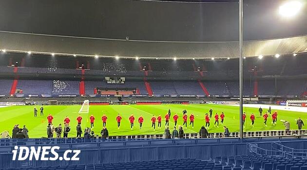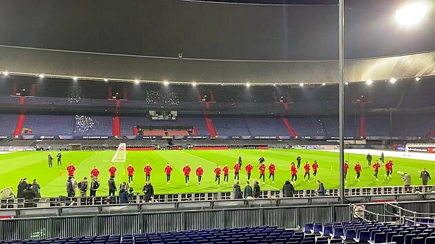 Trénink fotbalistů Sparty v Rotterdamu před utkáním Ligy mistrů