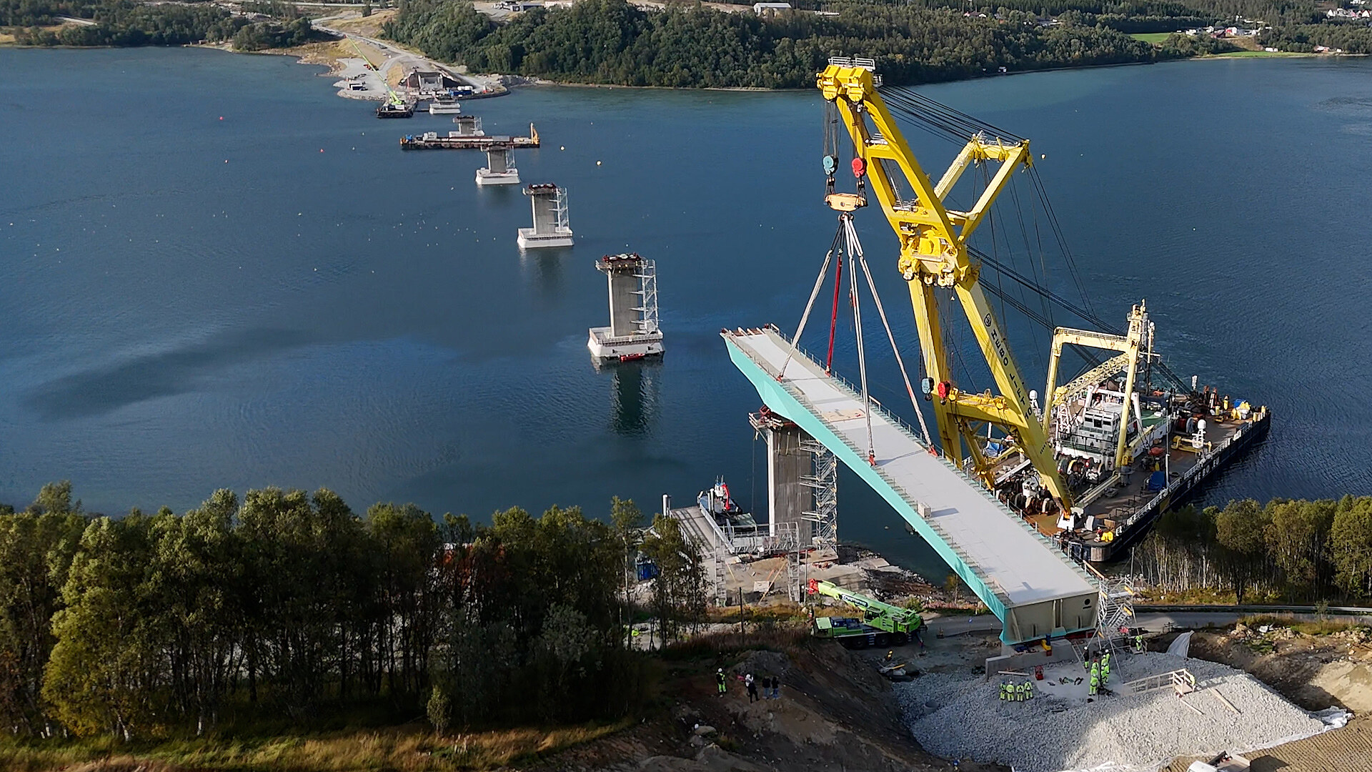 V nejsevernější části Norska v těchto dnech vrcholí příběh, který se zapíše do historie českého stavebnictví. Norská dcera českého Metrostavu osazuje ocelovou konstrukci nového mostu přes Ramfojrd. Segmenty o váze přes 900 tun instaluje největší lodní jeřáb v Evropě s nosností až 2 200 tun, třikrát vyšší, než mají největší české autojeřáby. Ocelové díly vážící dohromady 5 700 tun mají přitom za sebou tisíce kilometrů dlouhou trasu až z Prahy