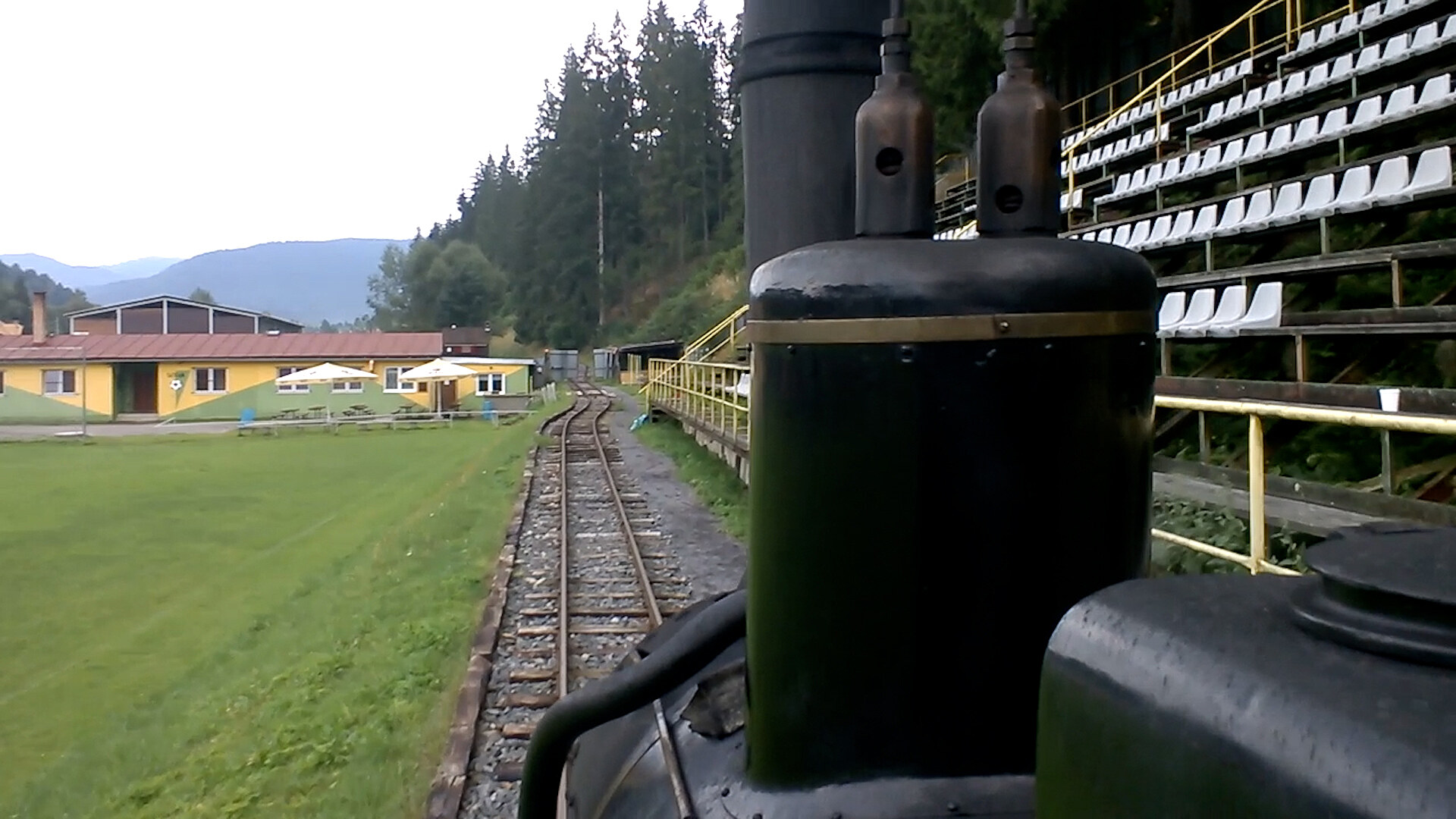 Záběry parního vlaku, který jede přes fotbalové hřiště v Čiernem Balogu - Janošovke je velmi oblíbené. Teď vám ale ukážeme, jak vidí cestu na a přes stadion topič. Natočeno na Čiernohronské železnici v roce 2015.