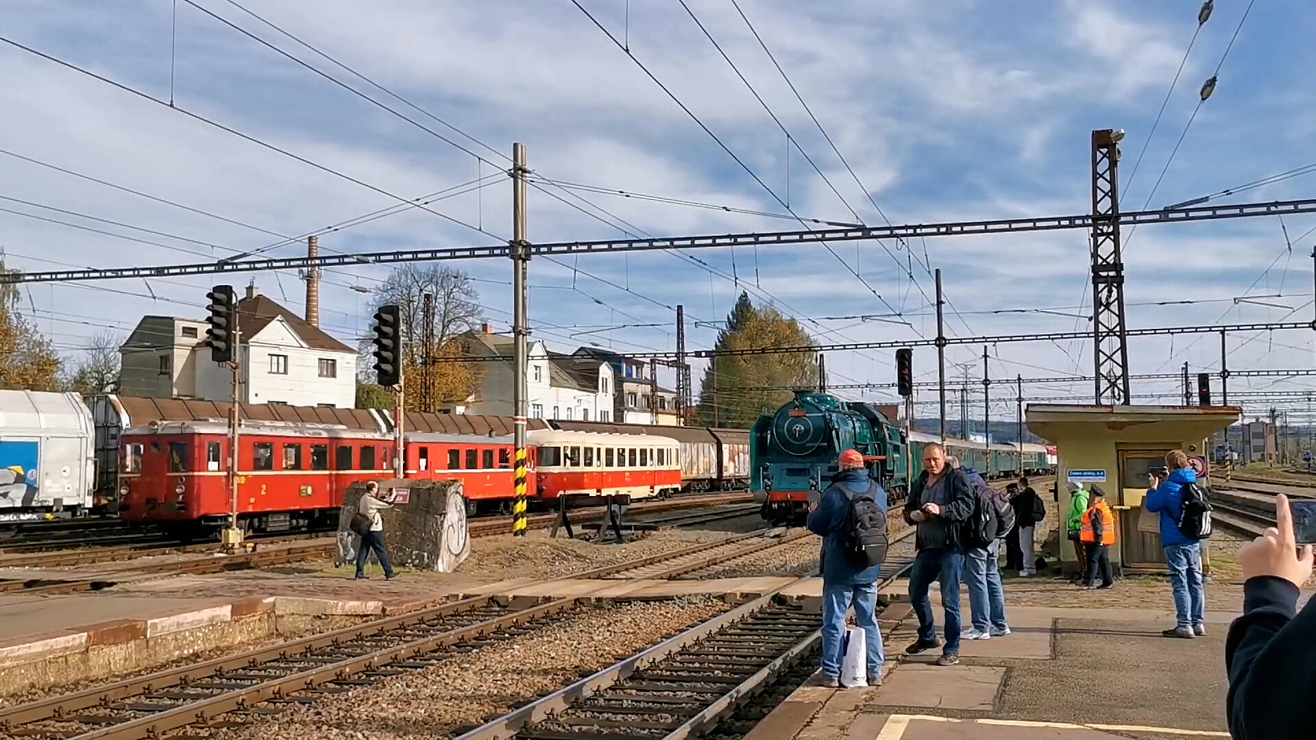 Během Národního dne železnice, 20. října 2024 na nádraží v České Třebové se daly potkat i takové dnes už neobvyklé soupravy. Zelený Anton 486.007 míjel vlak složený z motorových vozů M131.1 a M240.0.