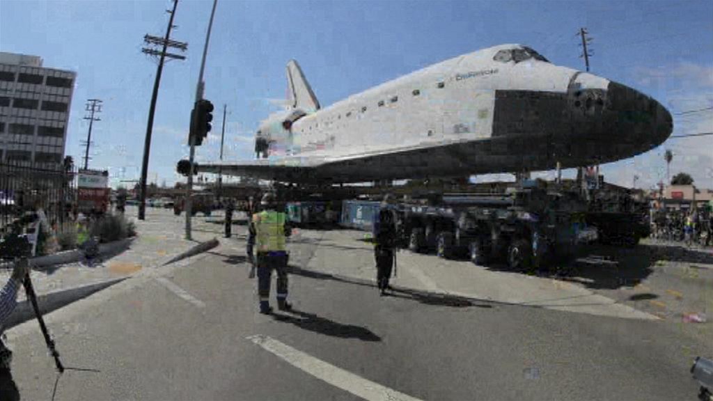 Zrychlená cesta raketoplánu Endeavour ulicemi Los Angeles