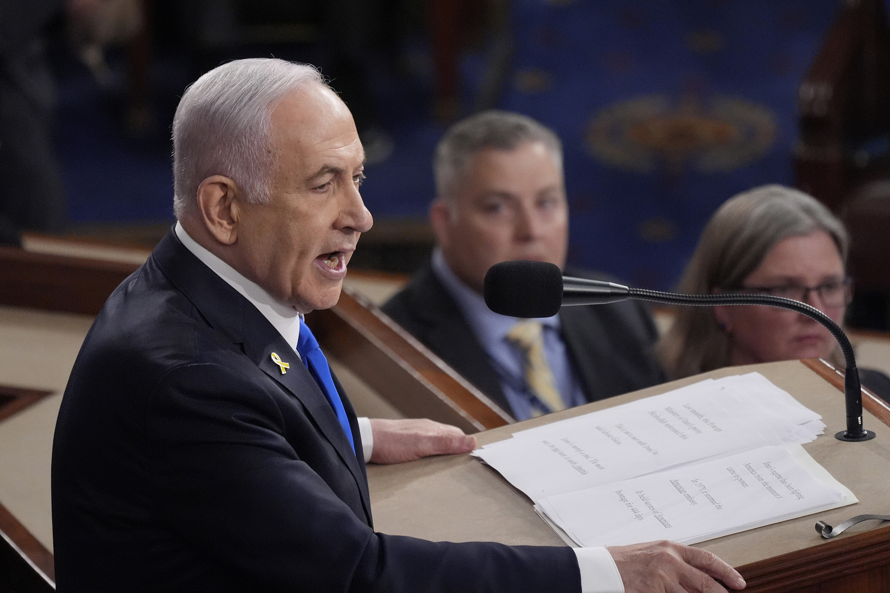 Izraelský premiér Benjamin Netanjahu v úvodu projevu v americkém Kongresu řekl, že svět čelí střetu civilizace s barbarstvím. Před budovou Kongresu se shromáždily tisícovky protestujících, kteří nesouhlasí s návštěvou premiéra kvůli vojenským operacím Izraele v Pásmu Gazy. Policie proti nim nasadila slzný plyn, Netanjahu je označil za „užitečné idioty“ Íránu.