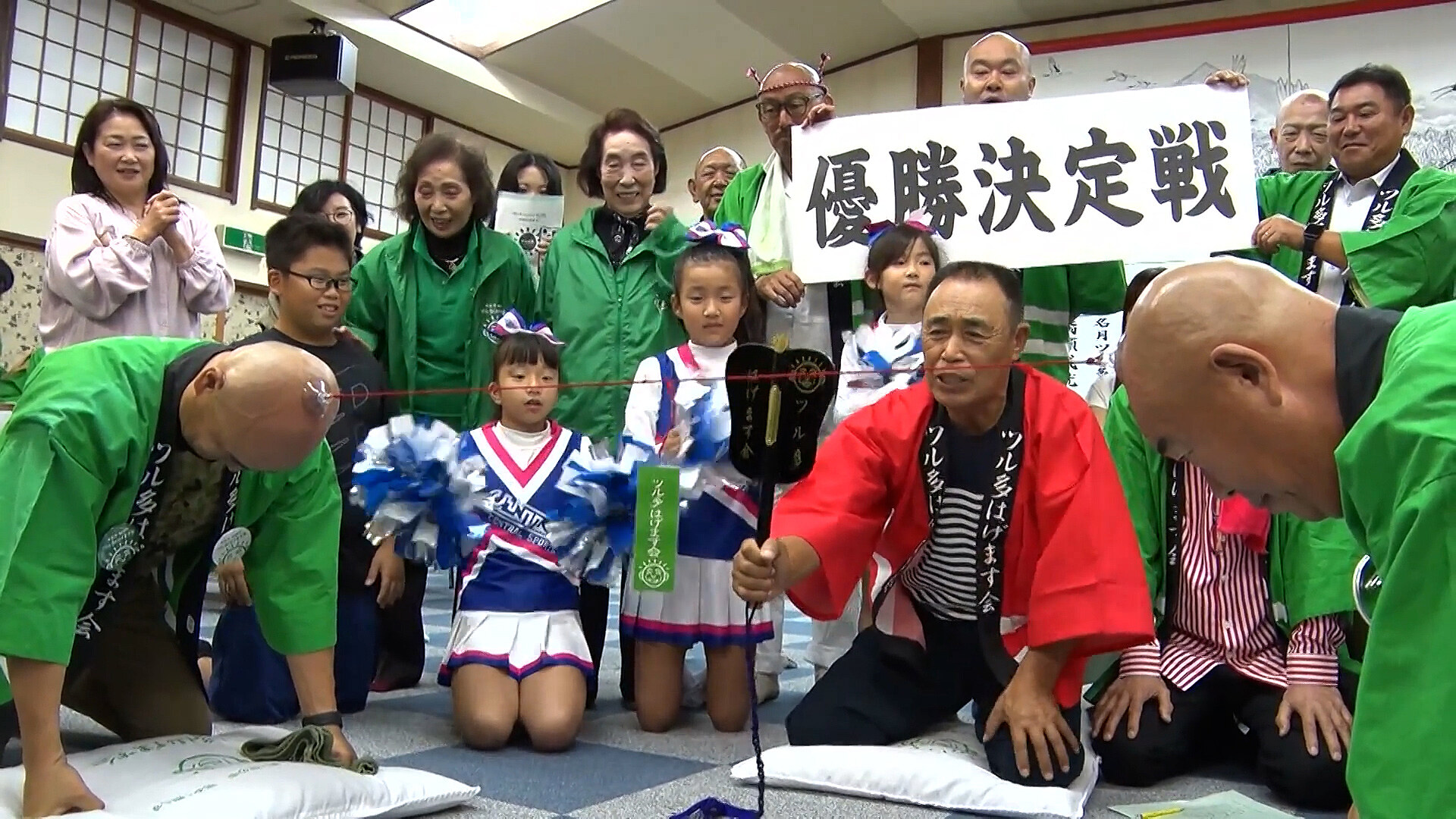 Ve městě Tsuruta se konalo každoroční podzimní setkání asociace plešatých mužů. Účastníci soutěžili v originálních disciplínách, jako je házení šipek na pleš nebo přetahování sacími kelímky.