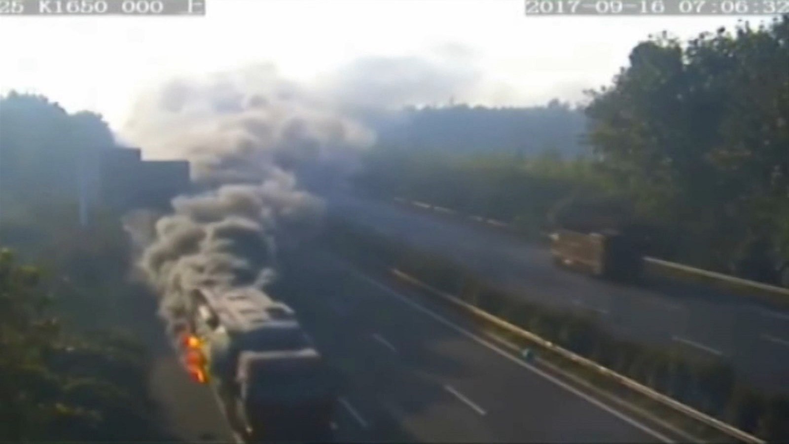 Dramatické záběry z Číny ukazují hořící kamion, který minulý týden projel stanicí, kde se vybírá mýto. Oblaka kouře a šlehající plameny vypadaly opravdu děsivě.