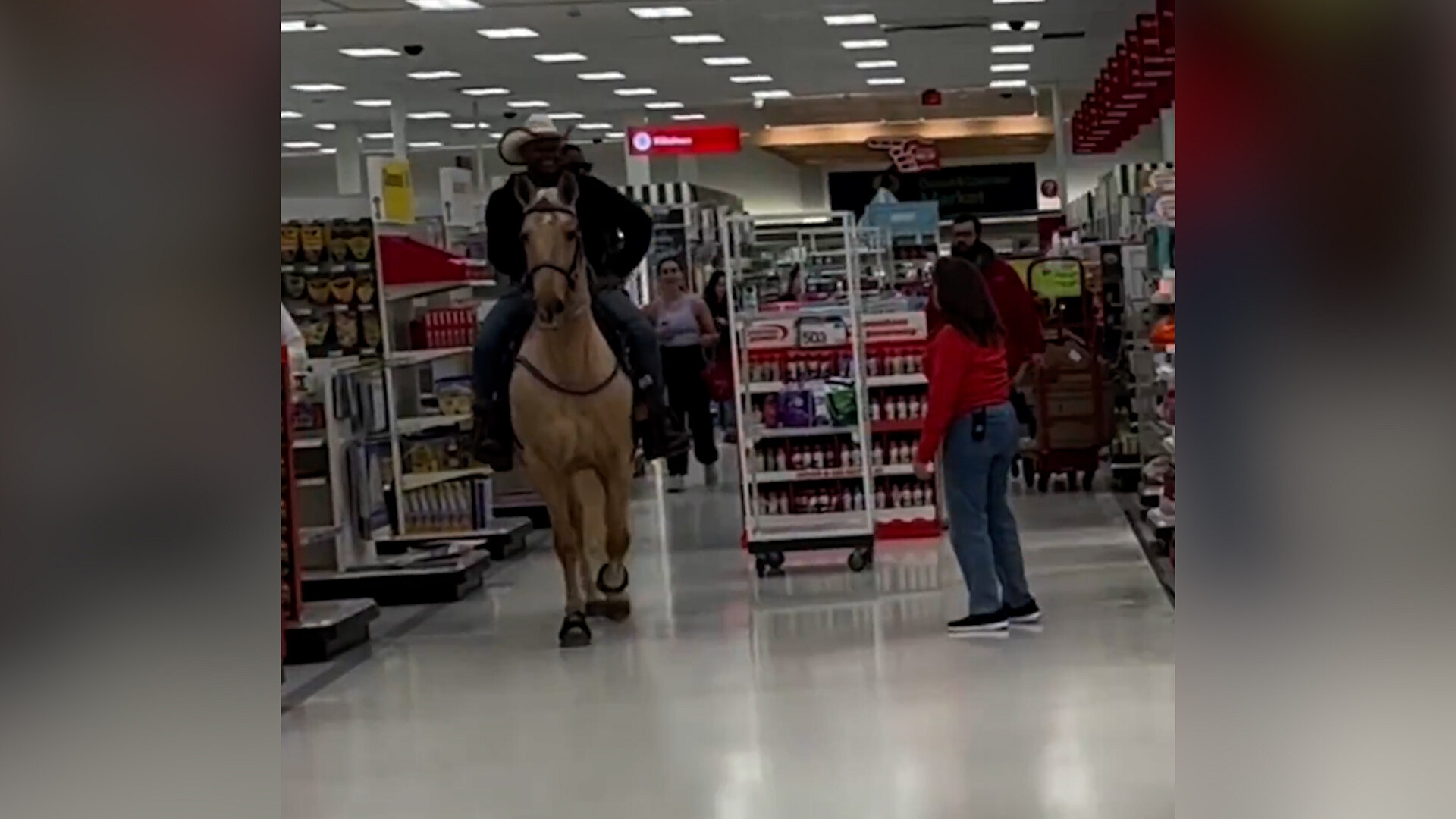 Sociální sítě se baví dvouminutovým virálním videem, které zachycuje muže, jak se v texaském supermarketu Target projíždí uličkami mezi regály na koni. Zákazníci na zvíře překvapeně zírali a zaměstnanci obchodu na muže pokřikovali, aby s koněm z prodejny okamžitě zmizel. Muže i jeho kamaráda, který seděl na koni za ním, to ale nechávalo chladným a v klidu pokračovali v projížďce. Před tím, než obchod opustili, stihl kůň na místě zanechat i suvenýr v podobě teplého trusu.
