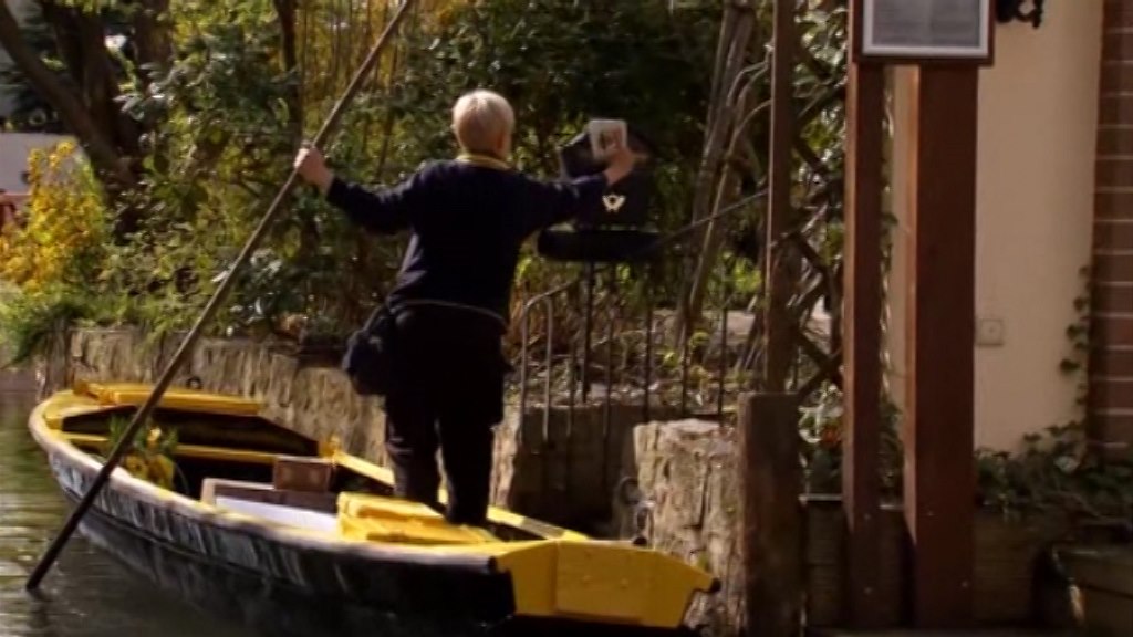 Netradiční pošťačka. Poštu rozváží na člunu