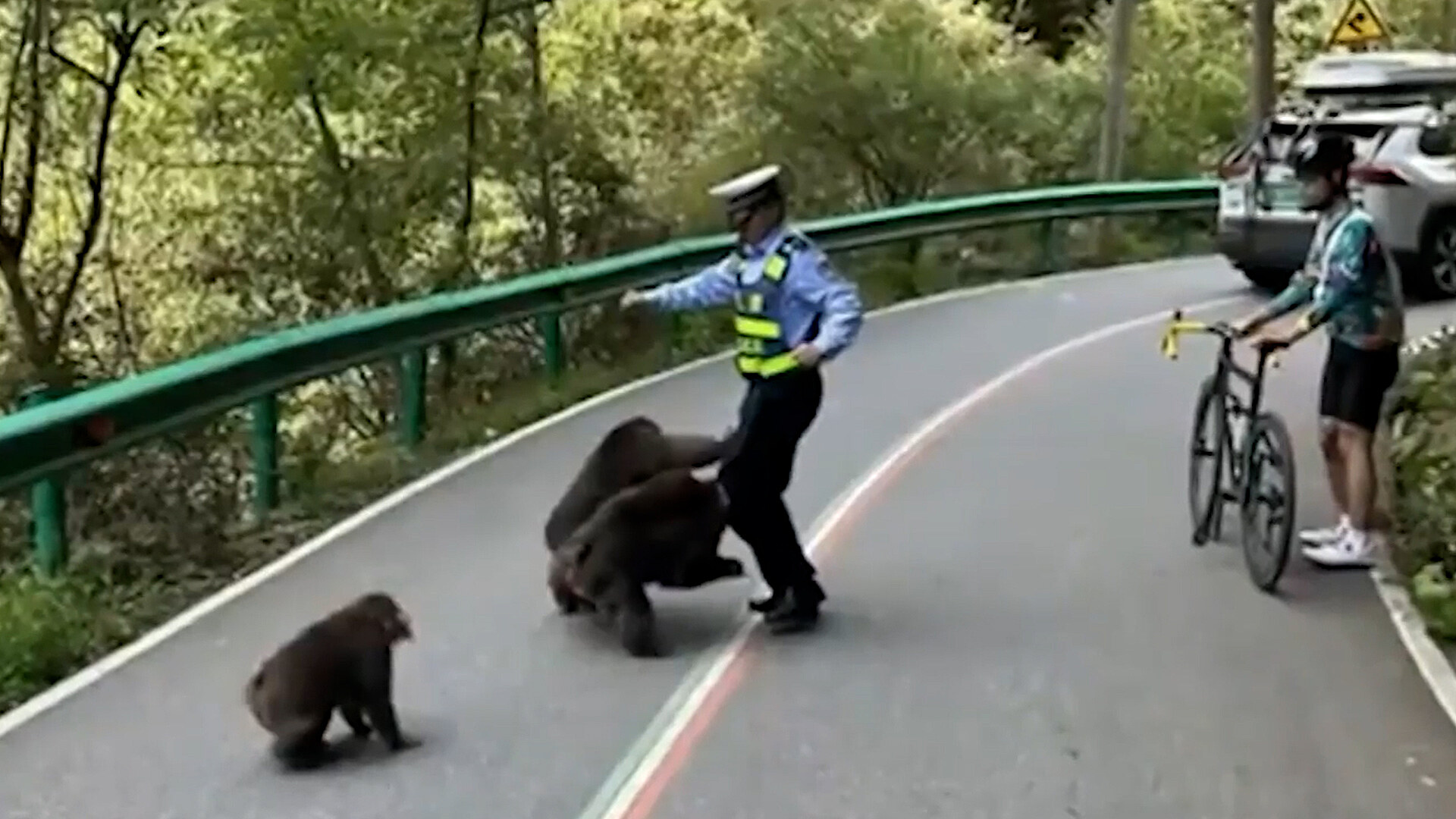 Opice zablokovaly silnici, poté napadly policistu