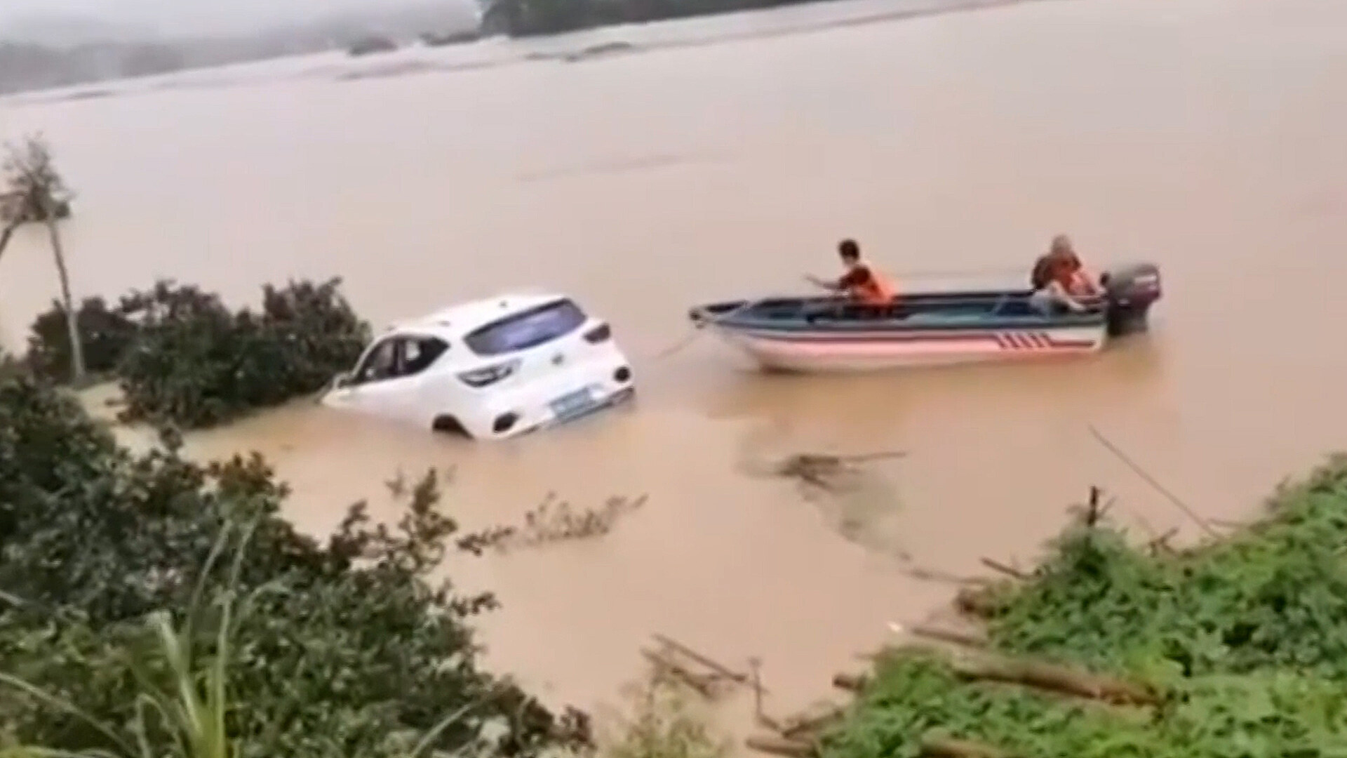 Dva vesničané z čínské obce Ta-chu-pching zachránili posádku auta, které strhla rozvodněná řeka. Během silného deště nasedli na člun a i přes velmi silný proud se dokázali dostat až k vozidlu, které se začínalo potápět. Všimli si, že uvnitř auta je řidič, kterého po rozbití okénka vytáhli ven a přesunuli do bezpečí. Vůz, podle místních úřadů, nesla rozvodněná řeka téměř pět kilometrů.