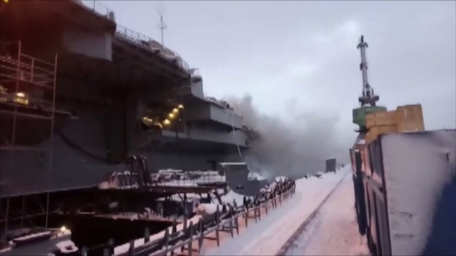 Na jediné ruské letadlové lodi Admirál Kuzněcov, která podstupuje opravy v severoruském Murmansku, vypukl požár. Podle agentury TASS je zraněno deset lidí a Interfax uvedl, že požár se rozšířil ze 120 na 600 metrů čtverečních. Podle listu Kommersant se pohřešuje kapitán Viktor Izmajlov.
