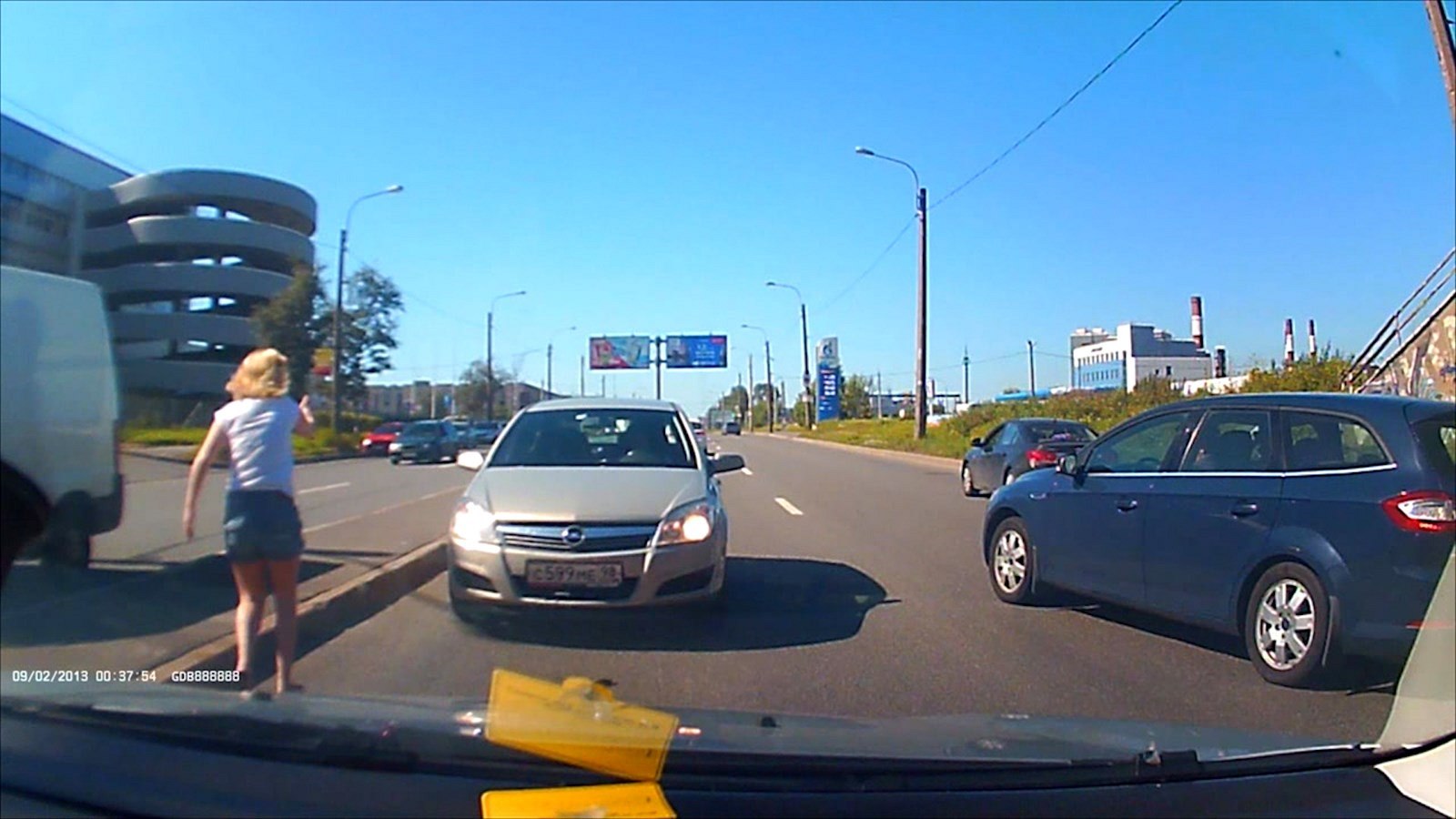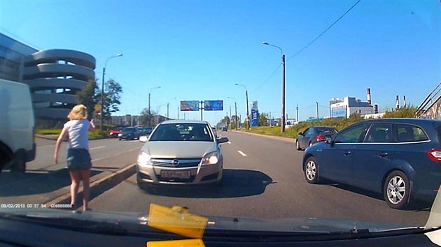 Vypadalo to, že petrohradská řidička vyrazila do provozu bez řidičáku, nebo úplně na mol, když najela do protisměrného pruhu a dlouhé minuty se odtud nedokázala dostat zpět do toho správného.