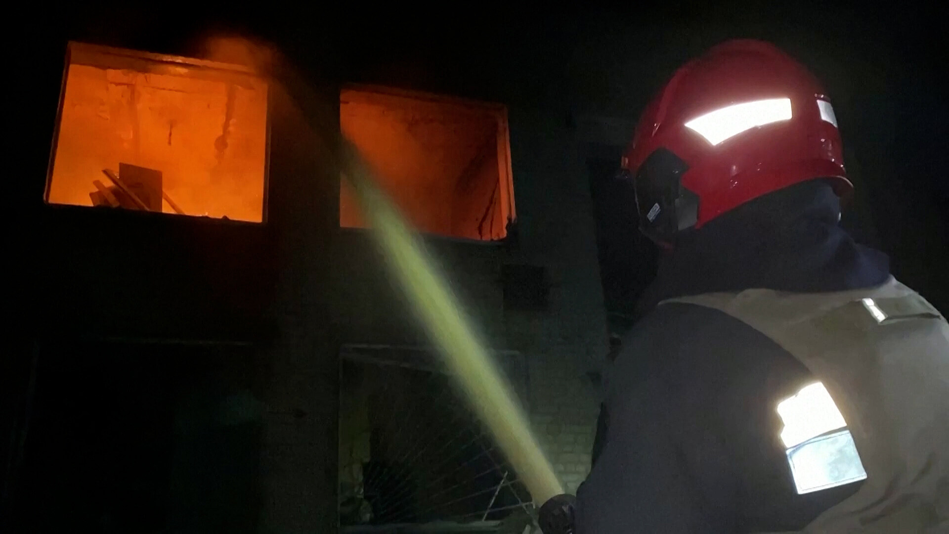 Ukrajinští hasiči bojovali od časného rána s požárem, který vypukl v charkovské škole poté, co ji zasáhla ruská raketa. Záběry agentury Reuters ukazují velký kráter, který v budově zůstal.