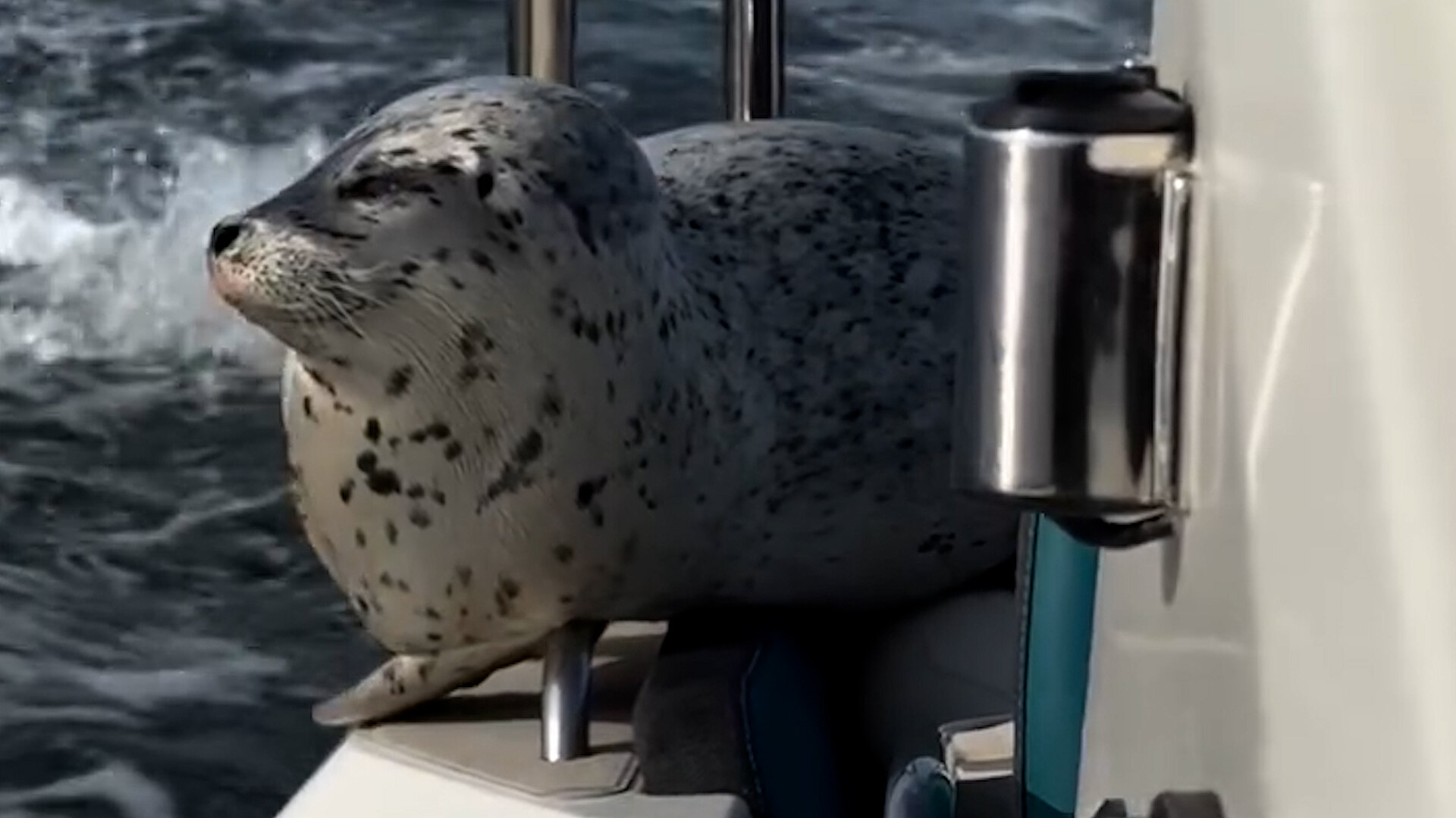 Skupina amatérských pozorovatelů velryb u pobřeží ostrova Camano ve státě Washington zachytila dramatický okamžik, kdy tuleň vyskočil na jejich loď ve snaze uniknout skupině kosatek. Video z nečekaného setkání pořídila fotografka Charvet Drucker.