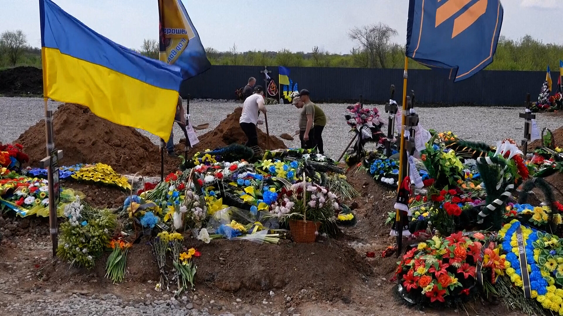 Západní organizace odhadují, že od začátku války zemřelo nebo utrpělo zranění asi sto tisíc ukrajinských vojáků. Není tedy výjimka, že i na těch nejmenších hřbitovech se každý den koná více pohřbů. Například v pondělí uložili v Kryvém Rihu ostatky čtyř padlých vojáků.