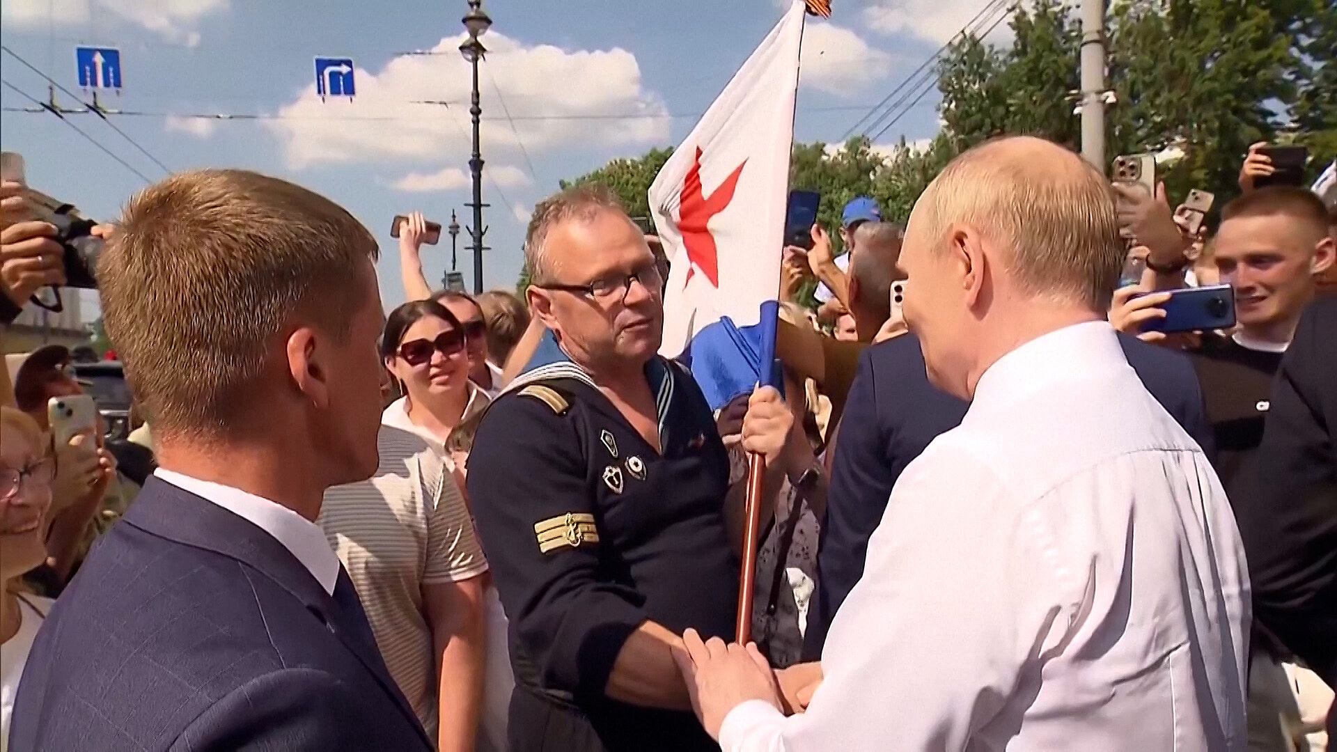 Ruský prezident Vladimir Putin v neděli (27. července) navštívil Petrohrad, aby se zúčastnil akcí věnovaných Dni námořnictva. Během návštěvy také hovořil s místními obyvateli. Putina přivítal bývalý důstojník námořnictva Pavel Morozov, který požádal Putinovu ochranku, aby se o něj postarala. Letošní námořní přehlídka byla ale z bezpečnostních důvodů zrušena. V předchozích letech Rusko oslavovalo Den námořnictva přehlídkami, ohňostroji a bojovými ukázkami ve velkých městech od Vladivostoku po Petrohrad.