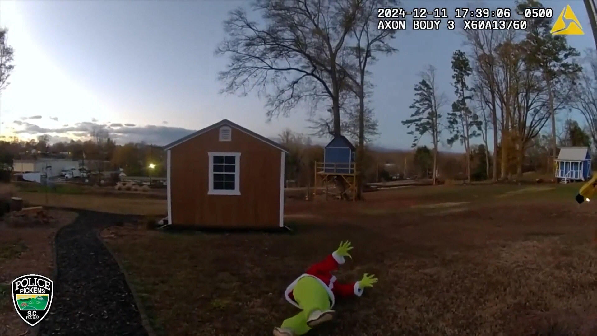 Policisté z amerického města Pickens zveřejnili před Vánocemi vtipné video. Dostali totiž hlášku, že podezřelý z vloupání, kterého volající popsal jako „chlupatého zeleného tvora“, se v jednom z domů pokouší ukrást vánoční dárky. Po příjezdu na místo policisté vyrušili pachatele přímo při činu. Po krátké honičce a použití paralyzéru byl podezřelý, identifikovaný jako Grinch, zadržen. Úřady Grinche spojují s několika vloupáními v okolí města, kde byly nahlášeny krádeže dárků, vánočních stromků, a dokonce i cibule z kuchyně. Policie ujišťuje, že svátky jsou nyní v bezpečí. „S radostí oznamujeme, že Grinch je ve vazbě,“ uvedli. Obyvatelé si mohou oddechnout a užít si veselé Vánoce.