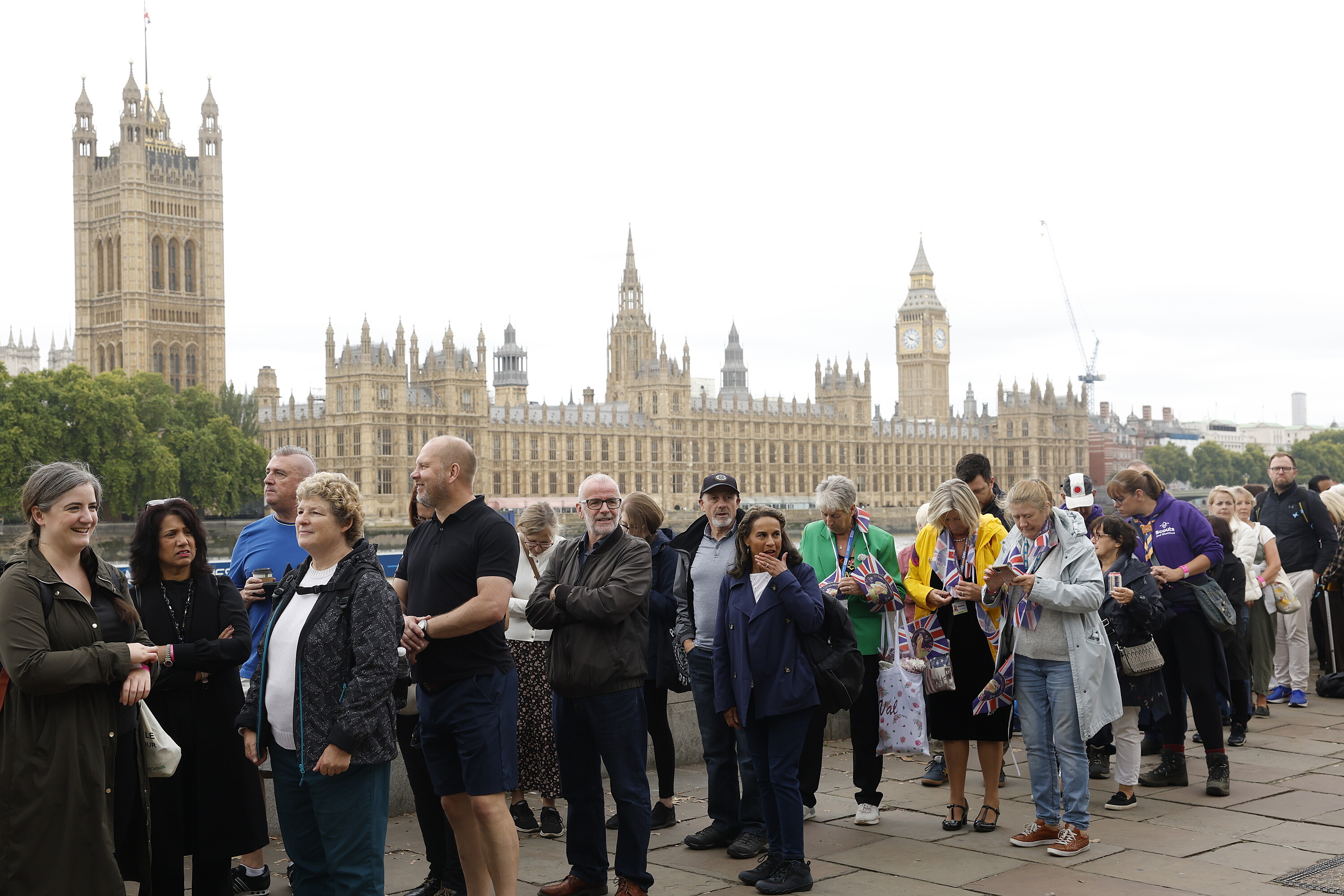 Desetitisíce Britů čekají navzdory dešti na možnost poklonit se rakvi se zesnulou královnou Alžbětou II., která je veřejně vystavená v budově parlamentu. Fronta, která podle posledních informací britské vlády dosahuje délky zhruba sedmi kilometrů, se vine po levém břehu řeky Temže.