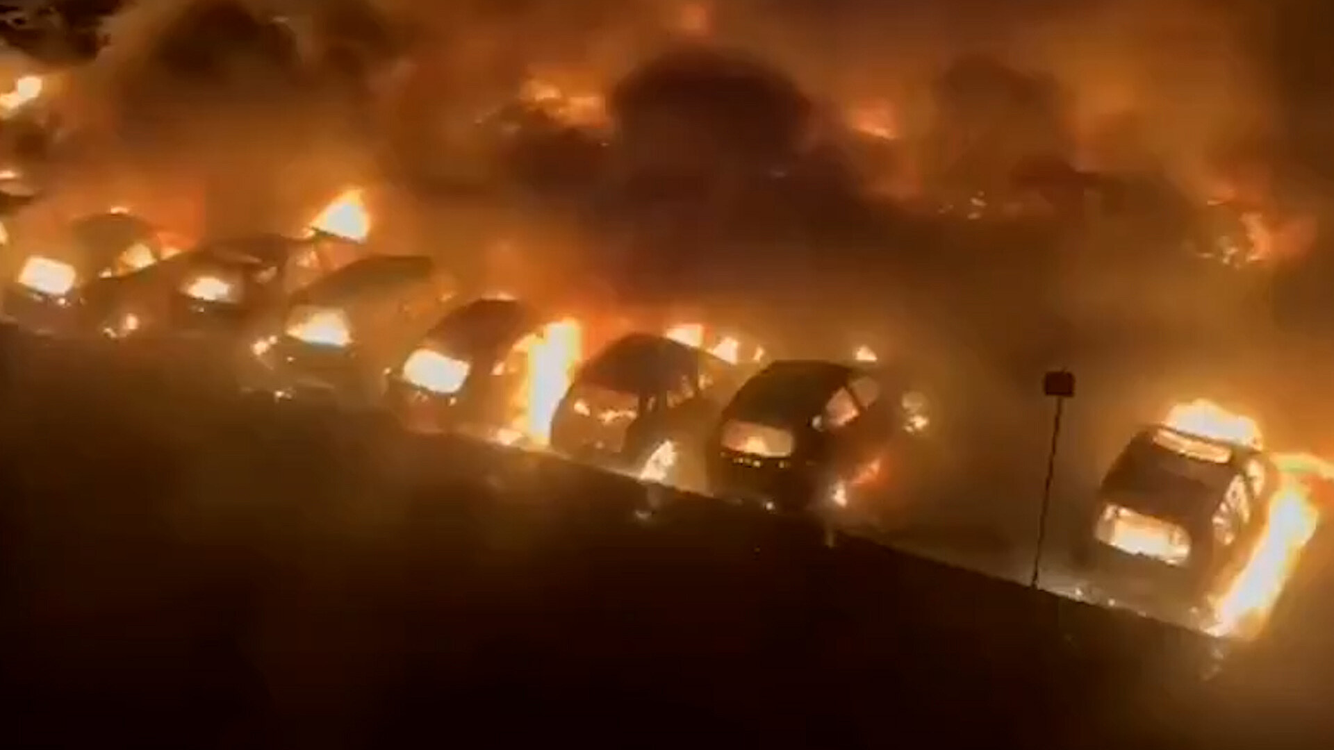 Žhář zapálil parkoviště. Shořelo třicet aut